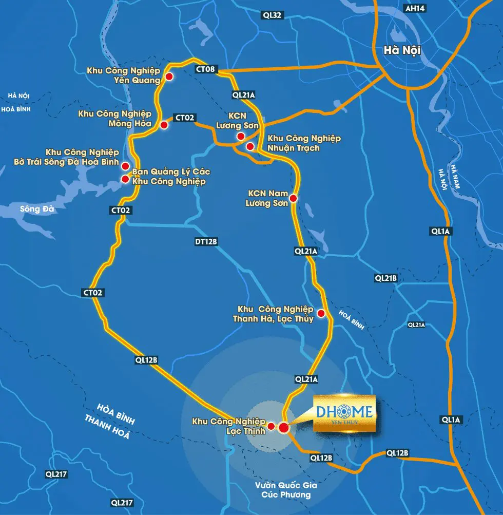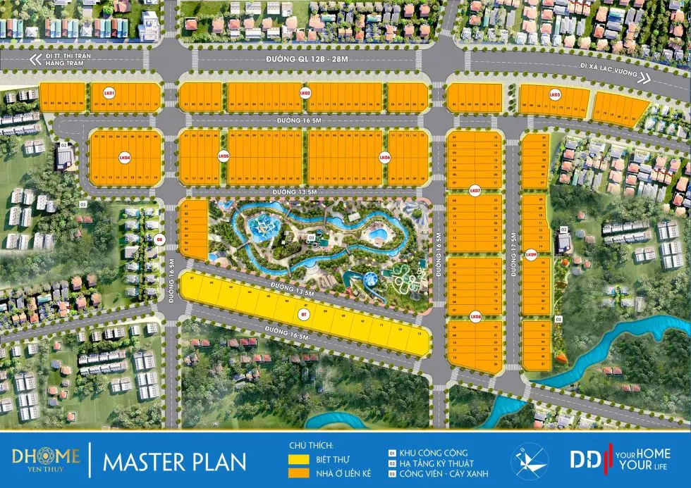 Khu đô thị DHome Yên Thủy là biểu tượng thịnh vượng mới tại thị trấn Hàng Trạm (Hòa Bình), được đầu tư bài bản bởi Công ty TNHH Xây dựng Tiến Đạt. Với vị trí chiến lược ngay mặt tiền Quốc lộ 12B và liền kề các Khu công nghiệp lớn, dự án là giải pháp an cư lý tưởng cho hàng ngàn chuyên gia, kỹ sư và người lao động.